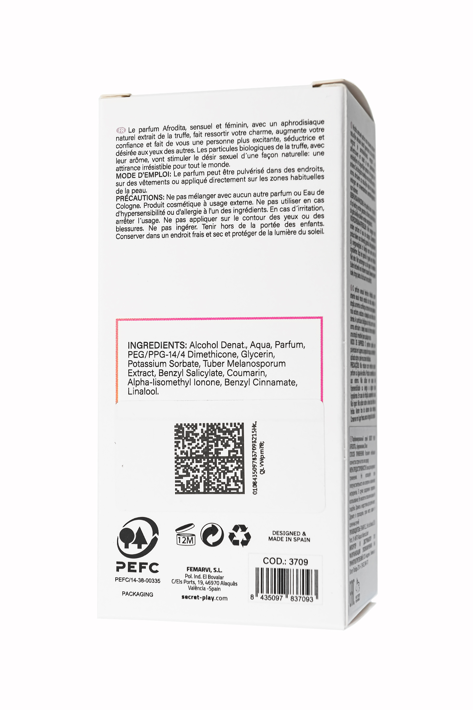 Парфюмированный спрей Aphrodita от испанского бренда Secret Play — это ключ к раскрытию вашей истинной чувственности и сексуальности. Вдохновленный природной силой трюфеля, одного из самых мощных афродизиаков, этот аромат подчеркивает вашу магнетическую привлекательность и усиливает уверенность в себе, превращая вас в объект непреодолимого желания. Aphrodita дарит соблазнительный шлейф сладкой карамели, который мягко обволакивает и пробуждает ваши природные чары – шлейф, который сопровождает вас в течение всего дня. Каждая капля этого аромата — словно невидимое прикосновение, создающее ауру соблазна и возбуждения, усиливая вашу сексуальность в глазах окружающих. Его биологически активные частицы естественным образом стимулируют сексуальное влечение, заставляя ваше присутствие быть по-настоящему незабываемым. Aphrodita — это больше, чем просто парфюм. Это средство для усиления вашего очарования и уверенности. Почувствуйте себя богиней и откройте двери в мир соблазна. Стильный флакон с распылителем делает нанесение простым и комфортным, идеально подходит для повседневного использования. Продукт не тестируется на животных, создан с заботой о вас и вашей коже. Этот парфюм — не просто аромат, а ваш секретный союзник в обольщении и создании незабываемых впечатлений. Будьте уверены в своем обаянии, позвольте Aphrodite подчеркнуть вашу истинную женственность и стать частью вашего ежедневного ритуала красоты. Формат: стильный прозрачный флакон с системой "