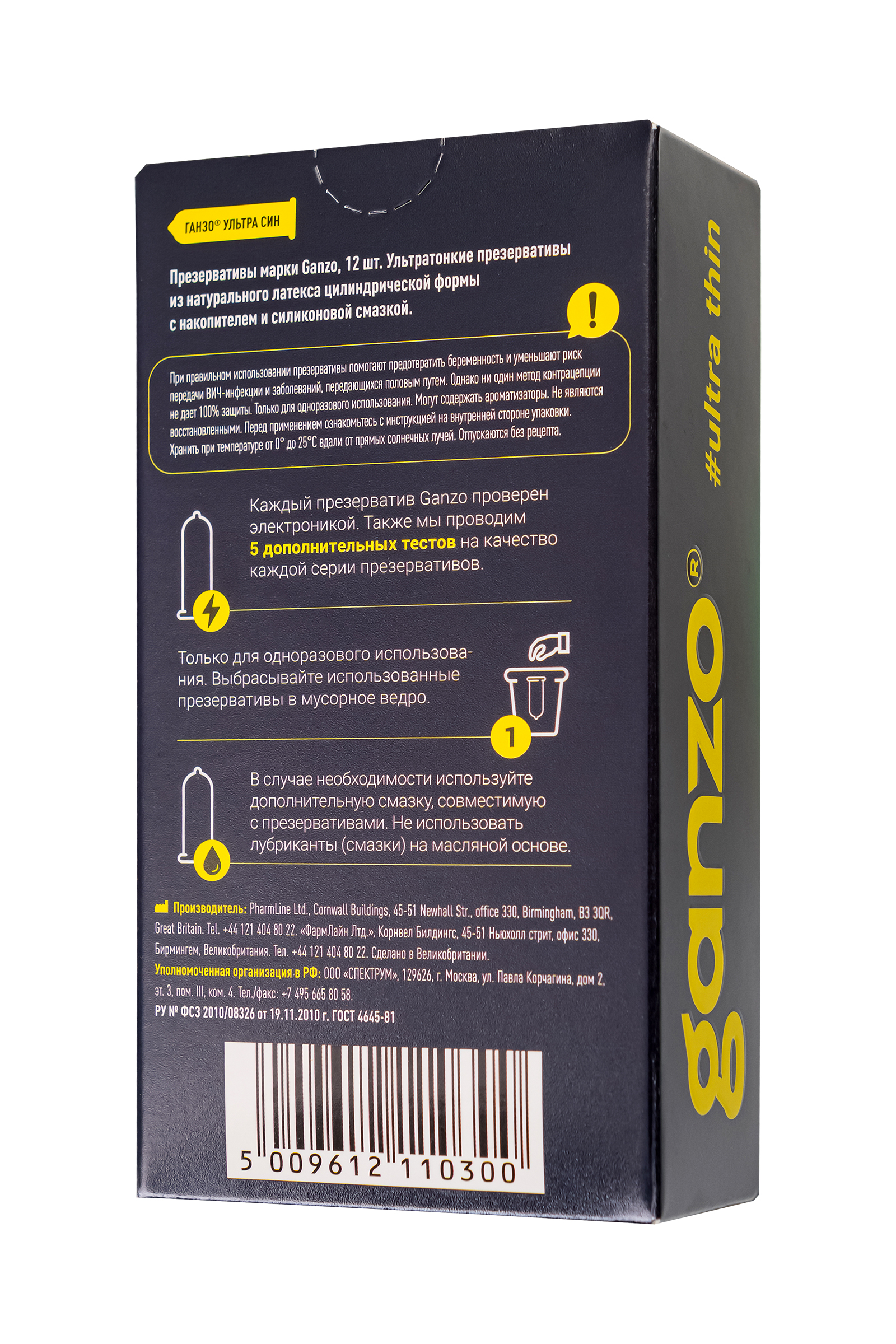 Ультратонкие презервативы Ganzo #ultra thin с накопителем в обильной смазке на водной основе. Презервативы сохранят естественность ощущений, не снижая уровня защиты. Не рекомендуется использовать ректально. Характеристики: • Материал презерватива: латекс. • Количество презервативов: 12, 3. • Длина презерватива: 18 см. • Ширина презерватива: 5,2 см. • Толщина стенки презерватива: 0,045 мм. • Производитель: Великобритания.
